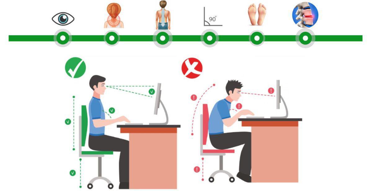 Tanto si trabajas o estudias en tu casa, colegio u oficina debes tener en cuenta ciertos hábitos de higiene postural que te ayudarán a mantener un óptimo estado de salud a lo largo de los años. A veces es tan simple como poner la pantalla a una altura adecuada, ser conscientes de nuestra postura y trabajar ciertos grupos musculares que evitarán problemas futuros porque prevendrán la atrofia muscular. Puedes consultar el siguiente recurso con la información resumida.