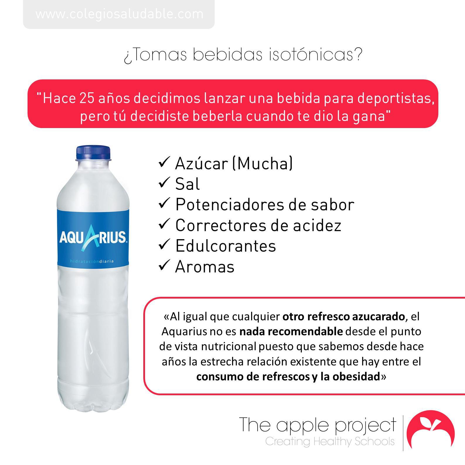 ¡No! El aquarius es un refresco, y contiene una enorme cantidad de azúcar que no es buena para nuestra salud (ni siquiera es adecuado para reponer los electrolitos en deportistas o personas con gastroenteritis).
