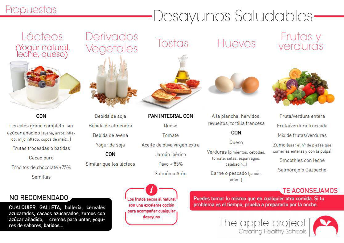 Os dejamos esta guía resumen para desayunos que también puedes descargar para imprimir en el siguiente enlace en la que presentamos diferentes alternativas saludables. Para cualquier duda os invitamos a contactar mediante el consultorio ONLINE.