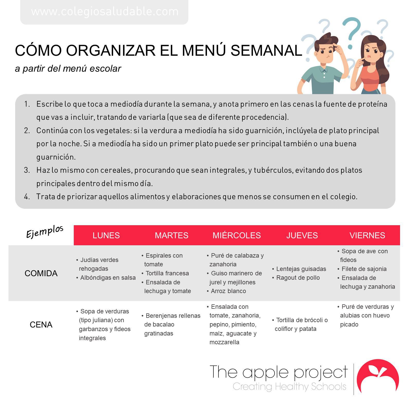 Por ejemplo, si la comida ha sido una carne (cualquier tipo) con arroz, podemos tomar de cena huevo o un pescado con patata al horno. Para aquellos niños que no tengan alergia al huevo, éste puede ser una muy buena opción en las cenas, puesto que en el menú del colegio se ofrece menos, y de esta forma tampoco abusaremos de las carnes o pescados.
